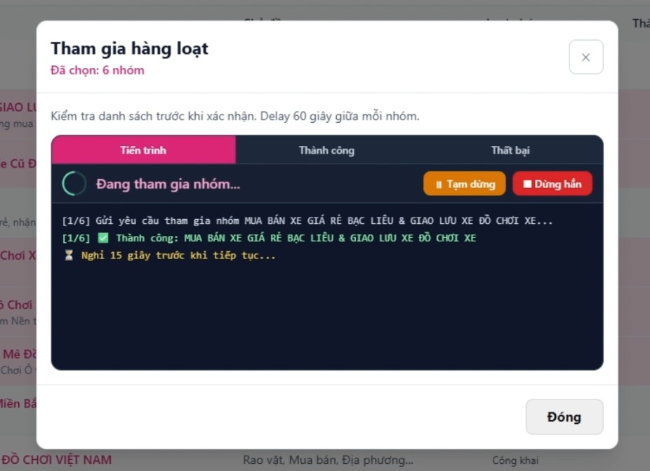- Giúp bạn tiết kiệm thời gian bằng việc tự động tham gia nhóm hàng loạt