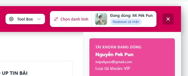 - Ở ngay trên đầu khi mở tool bấm chọn danh tính, rồi chuyển sang Page