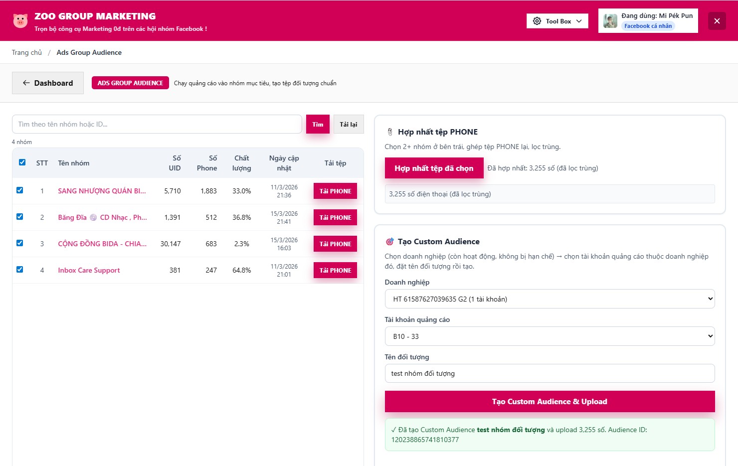 Hướng dẫn sử dụng ADS GROUP AUDIENCE