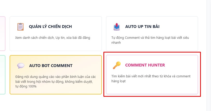 - Tự động hóa hoàn toàn quá trình comment vào các bài viết theo từ khóa chỉ định