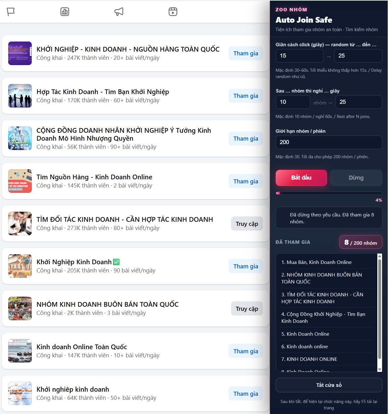 Tham gia nhóm Facebook bằng Auto Join Safe nhanh chóng